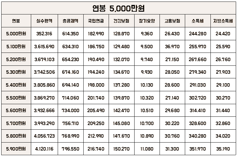 2022년 연봉 실수령액표, 나는 얼마를 받을까?