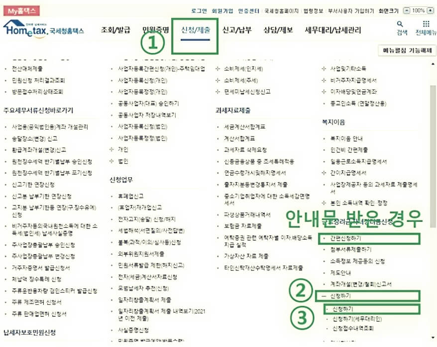 3)-2 안내문을 받은 경우에는 [간편신청하기] 선택을 하시면 됩니다.